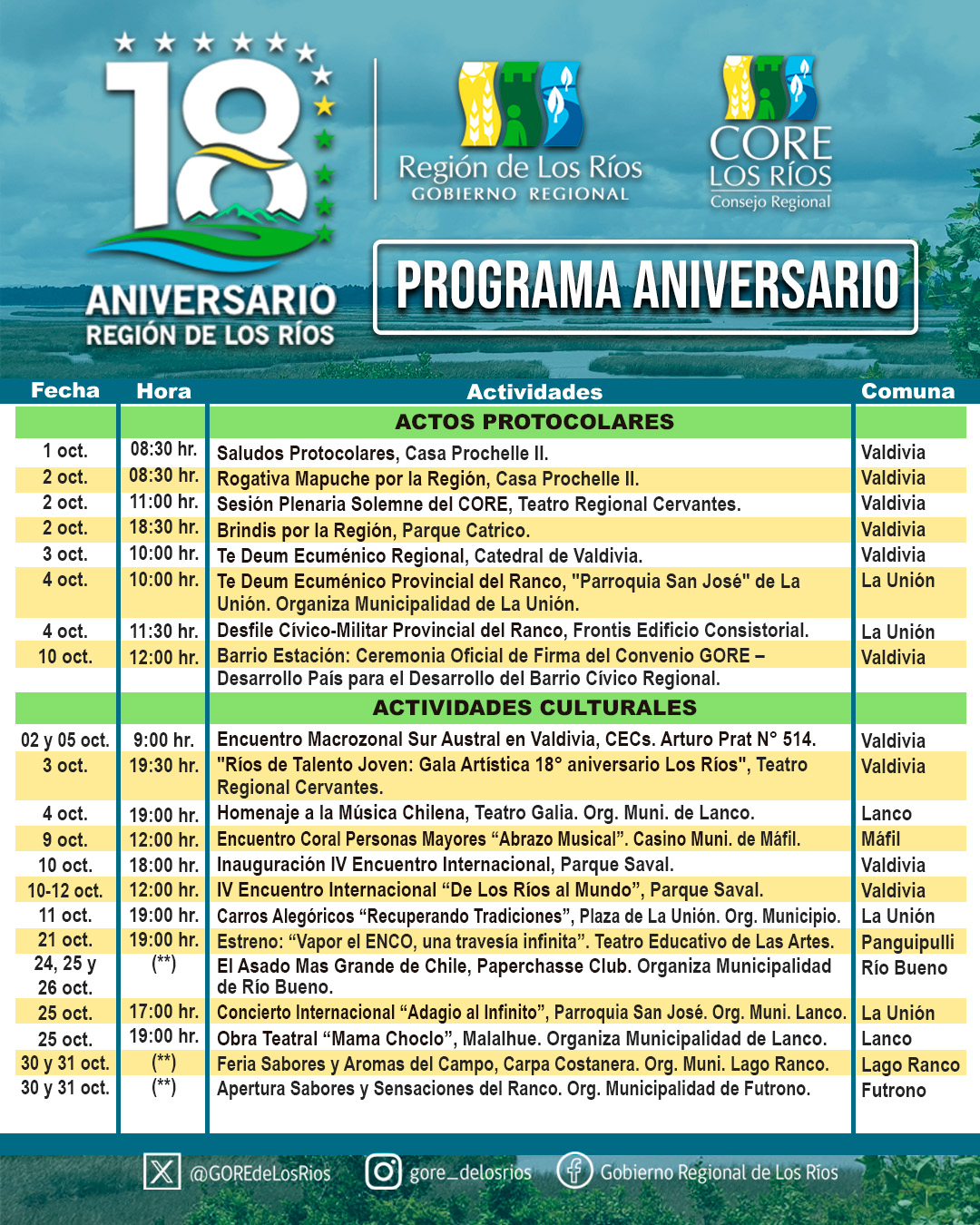 Celebra con nosotros los 18 años de nuestra Región de Los Ríos